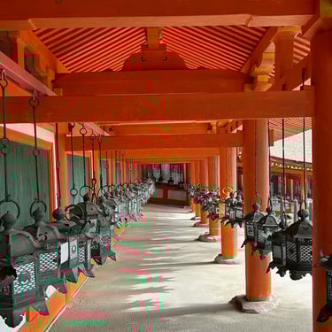 Sanctuaire shinto célèbre pour ses milliers de lanternes en pierre et en bronze, niché au cœur de la forêt.