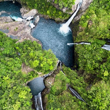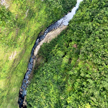 La route de Takamaka fait partie de ces balades où le trajet est déjà une aventure. Bordée d’une végétation luxuriante, elle serpente entre falaises et forêts, au rythme d’innombrables virages. Chaque tournant révèle un nouveau décor : des pentes couvertes de fougères, des cascades qui jaillissent au détour d’un ravin ou encore des vues plongeantes sur la vallée.